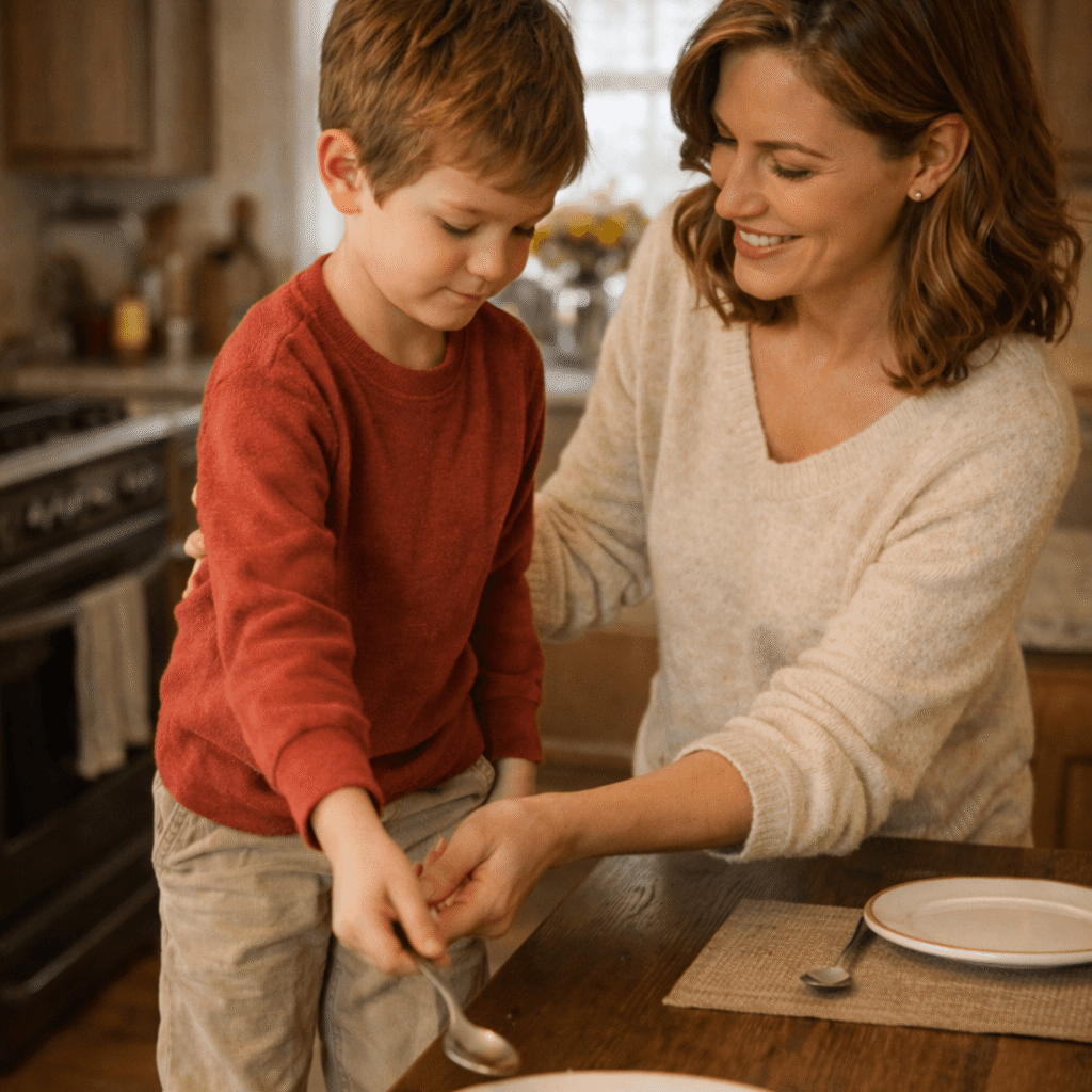 إعطاء الطفل مسؤوليات صغيرة في البيت – مناسبة لعمره – يساعده على الشعور بقيمته ودوره داخل الأسرة، ويعلّمه الاعتماد على نفسه تدريجيًا. من هذه المسؤوليات ترتيب سريره، جمع ألعابه، المساعدة في تحضير المائدة، أو رعاية نبتة صغيرة. بدل أن يكبر وهو معتاد على أن كل شيء يُقدَّم له جاهزًا.