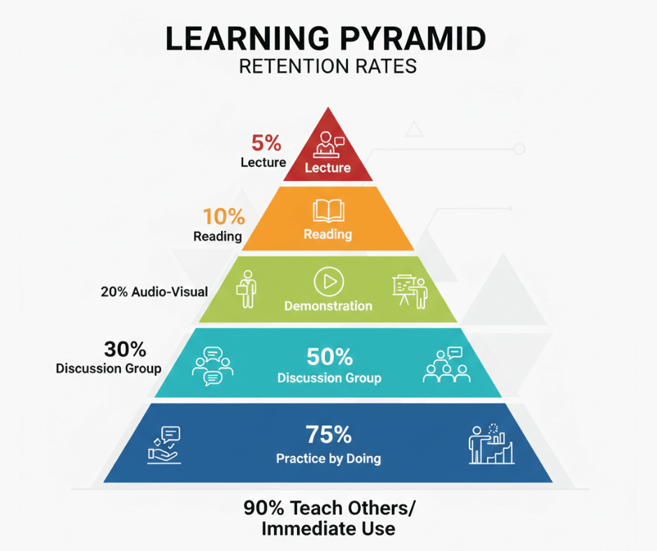 💡 منهجية التعلم: هرم التعلم (Learning Pyramid)
